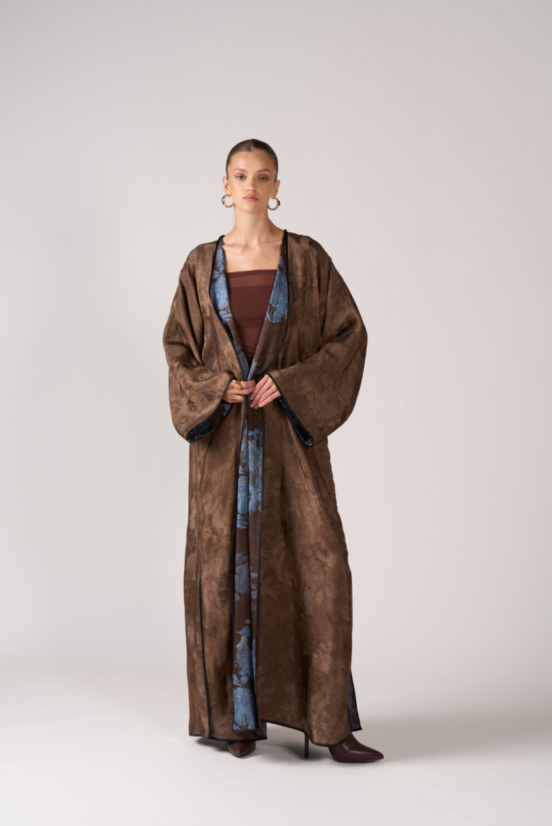 abaya is fully reversible, offering two refined looks in one flowing