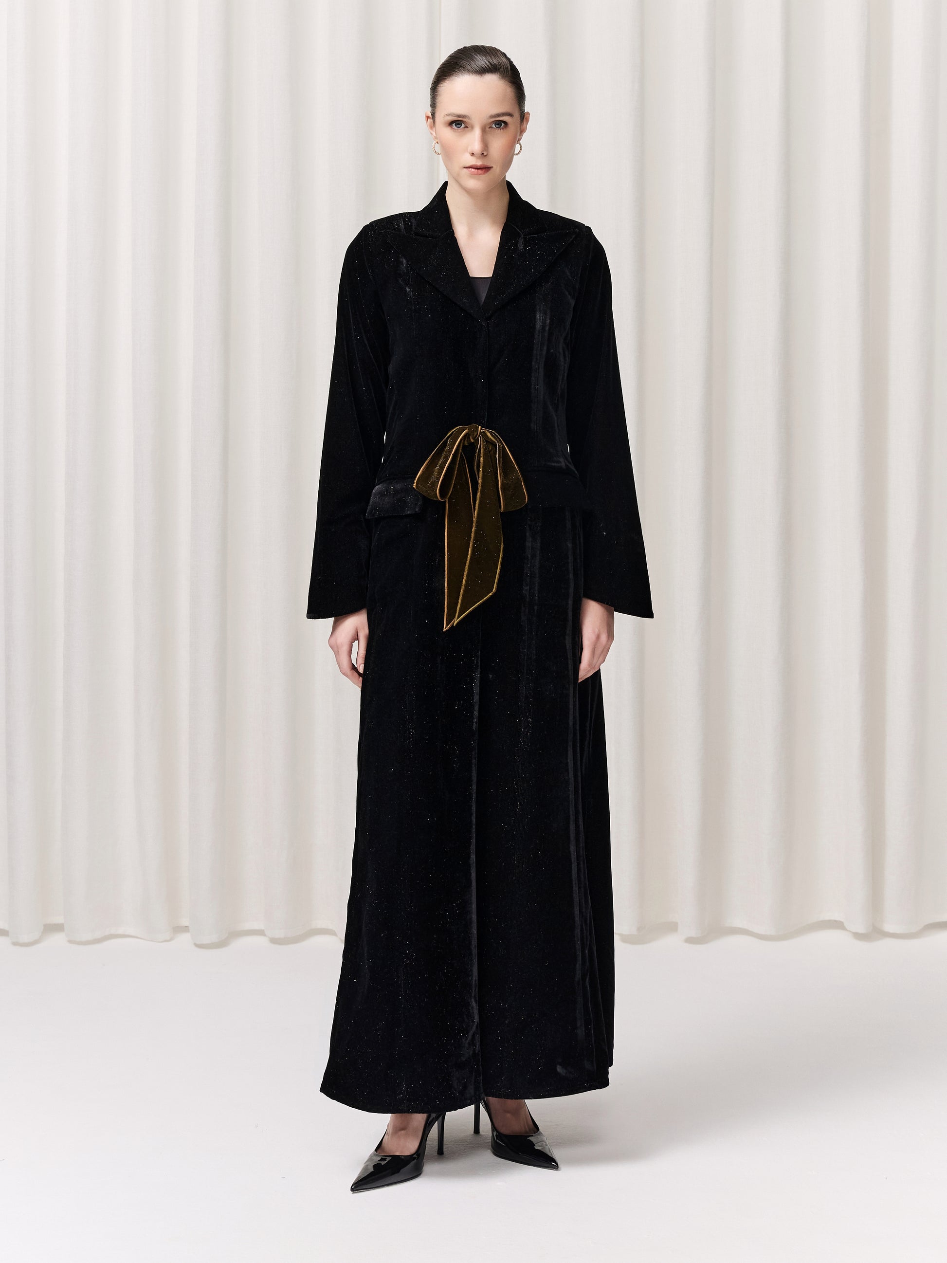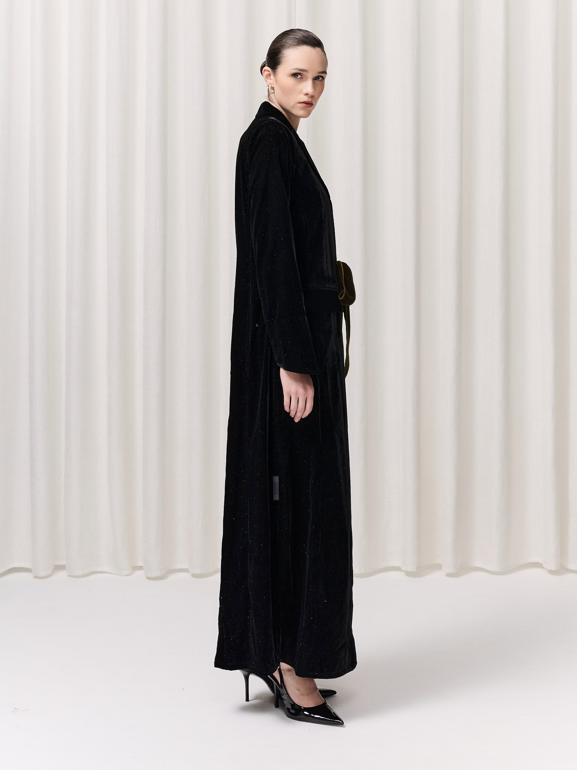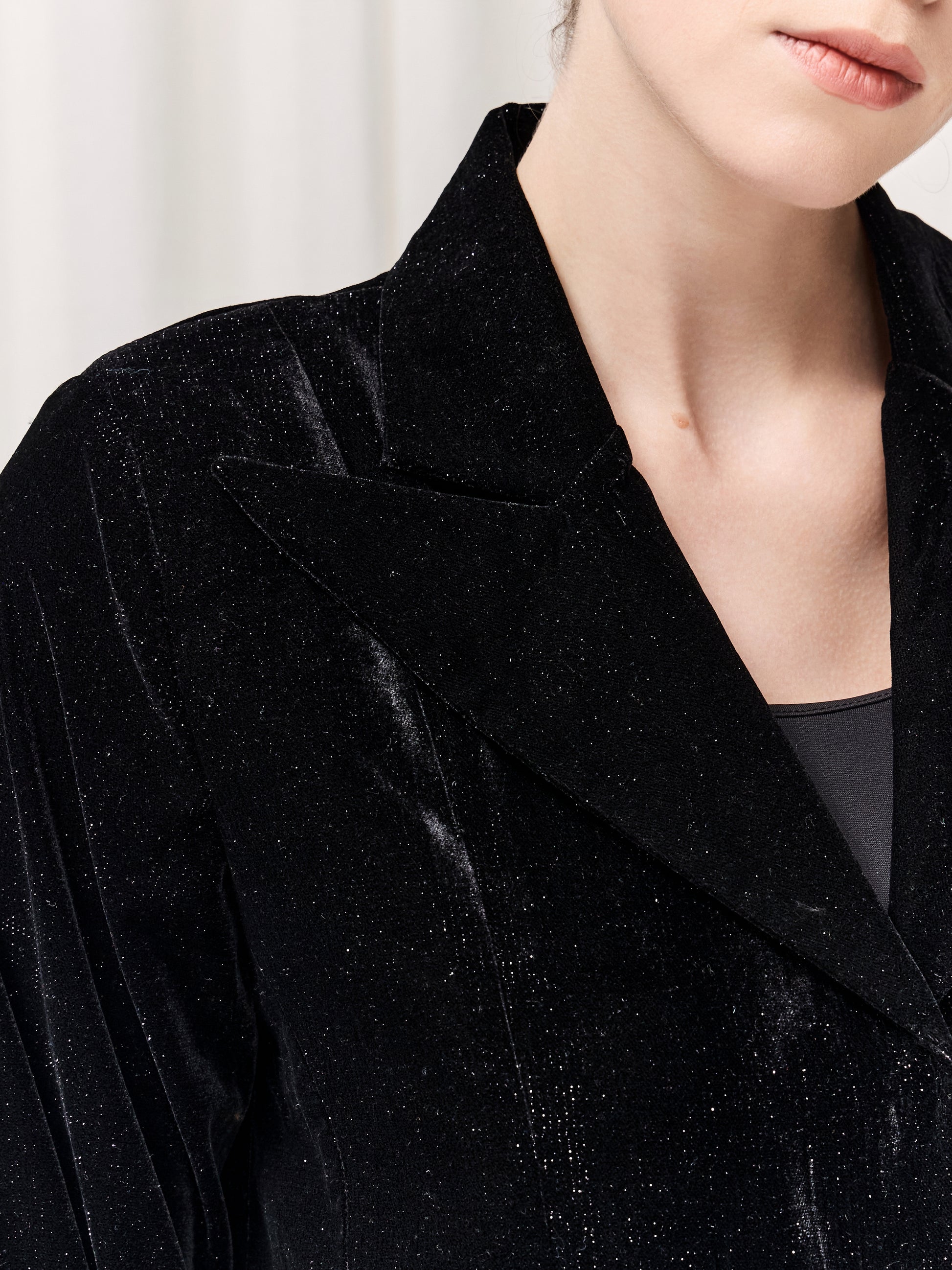 A statement piece crafted from sparkly velvet in a midnight sky black. Designed in a sophisticated blazer cut, it features