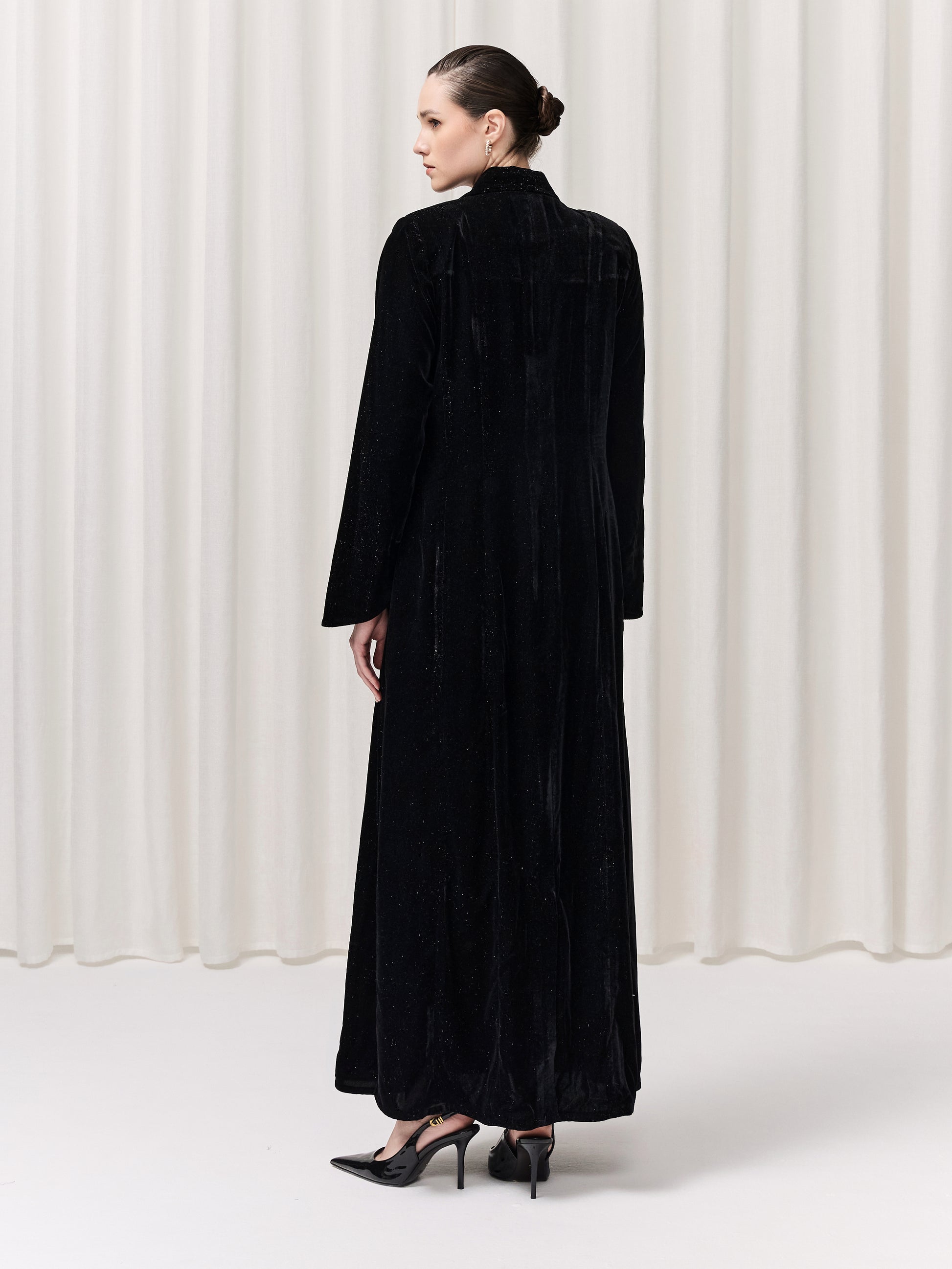 at the button adds a touch of contrast and charm, making this abaya truly unique. Complete with practical pockets for